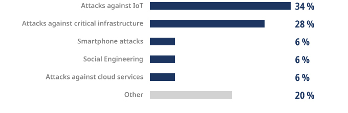 The experts primarily consider attacks on the Internet of Things (IoT) and critical infrastructure, such as production system controls, to be the greatest problem of the future. Also relevant: attacks on smartphones and cloud services.