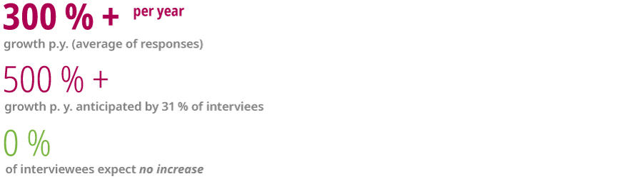 On average the expected annual growth rate is 300%. Around a quarter of respondents even thought a cyber attack increase of 500% to 1,000% was likely. A further 7% estimate the growth to be even higher.